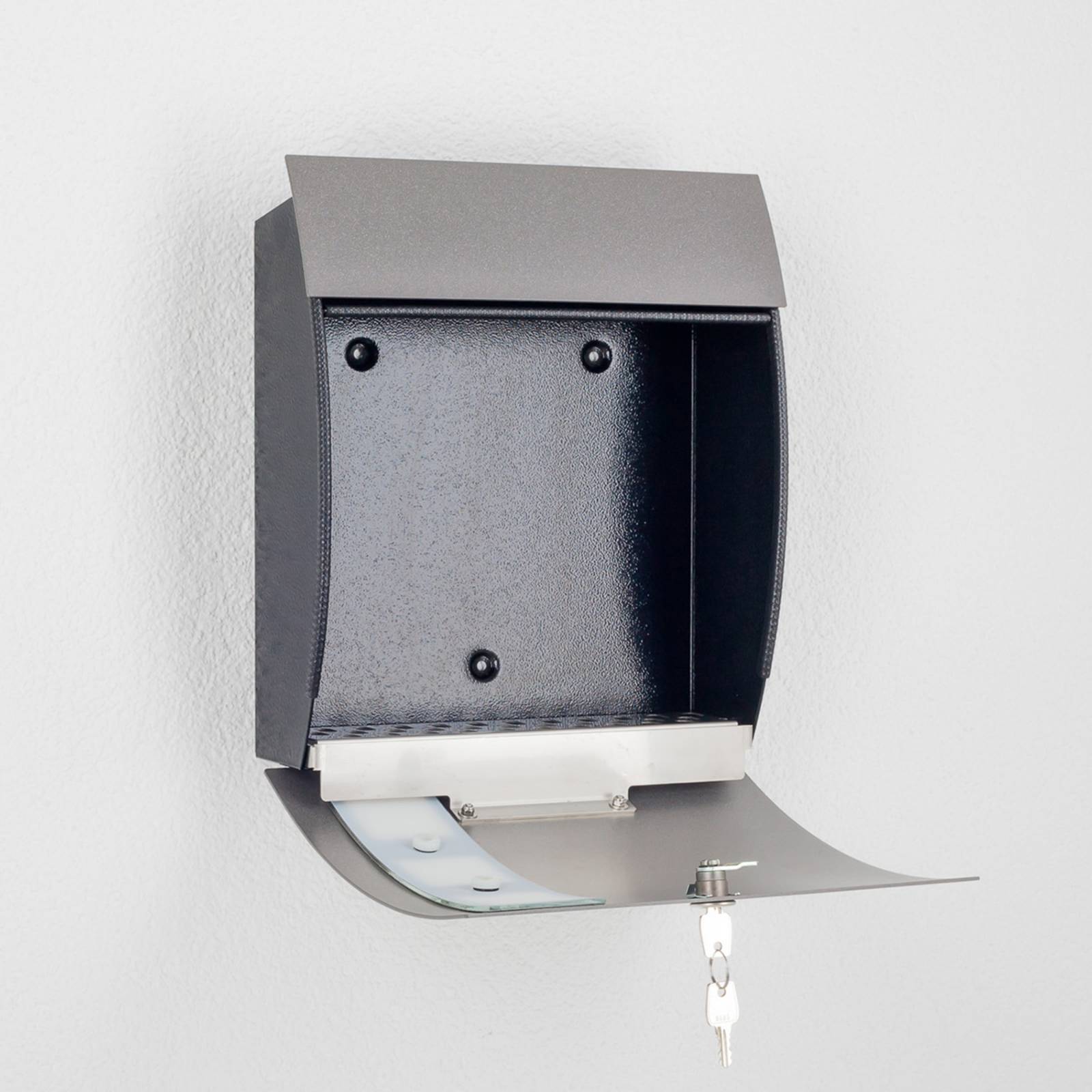 Pregiata cassetta postale Nila con pannello frontale color antracite Questa pregiata cassetta postale decorativa in un moderno color antracite può essere impiegata in modo versatile. Tre ritagli quadrati caratterizzano l'elegante pannello frontale, completando al meglio il design di questa casetta. Sono poi disponibili dei rotoli di giornali adeguati a questa cassetta (vedi accessori): I materiali di qualità e la loro accurata lavorazione caratterizzano i prodotti fabbricati in Germania da questo produttore, tutti dotati della più moderna tecnologia.