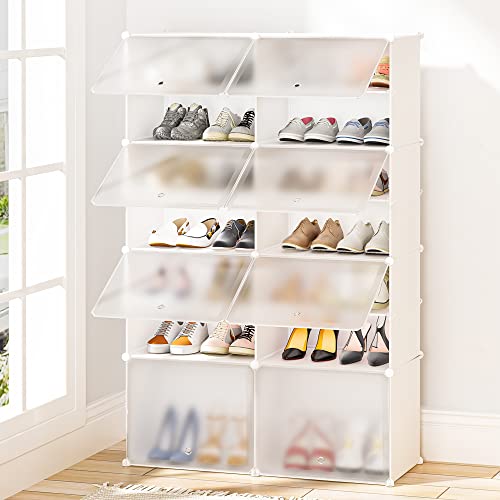 PREMAG JOISCOPE Scarpiera Componibile Salvaspazio,Scaffale Modulare Scarpiera da Esterno Ingresso Armadio,Scarpiere Portascarpe da porta Plastica Slim(2 * 7)