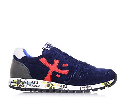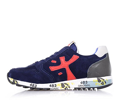 PREMIATA - Scarpa blu stringata, in camoscio e pelle, con lacci blu, caratterizzata da un'intersuola stampata che la rende unica, Bambino, Ragazzo-33