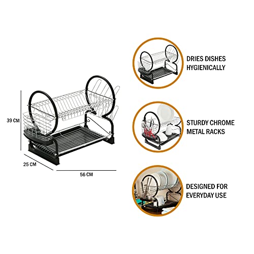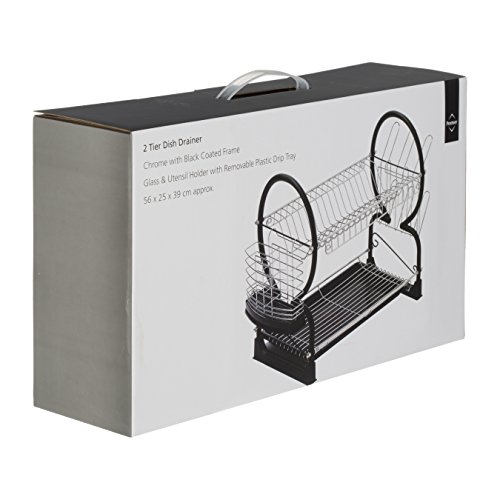 Premier Housewares 0509635 Scolapiatti, 2 Ripiani, Vasca di Gocciolamento Rimovibile, Cromo/Smalto, Nero