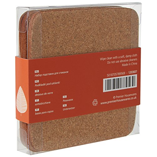 Premier Housewares 1203607 Orange Leaf Set di 4 Sottobicchieri in Sughero