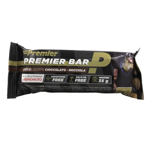 Premier Integratori Barrette Proteiche da 18 x 100g | Snack Proteico 35% Proteine con L-Glutammina Ajinomoto - Senza olio di palma (Cioccolato-Nocciola)