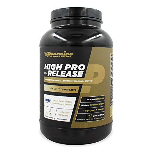 Premier Integratori High Pro Release - 1kg | Miscela di proteine del latte, proteine isolate del pisello,L-Arginina, Citrullina, vitamine del gruppo B (crema caffè)