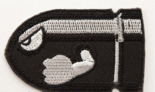 Premier Patches Bullet Bill Applica Ferro Ricamato su Patch Badge Costume Vestito Kart/Snes/Mario World/Super Mario Brothers/Mario Allstars Cosplay