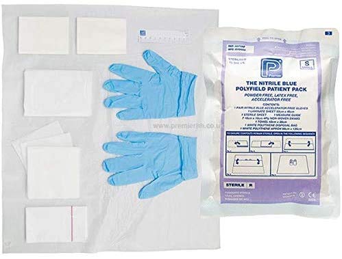 Consegna: 1 x paio di guanti in polietilene, 1 x 50 x 45 cm, campo sterile, 1 x sacchetto in polietilene e 1 x Ferita misura guida