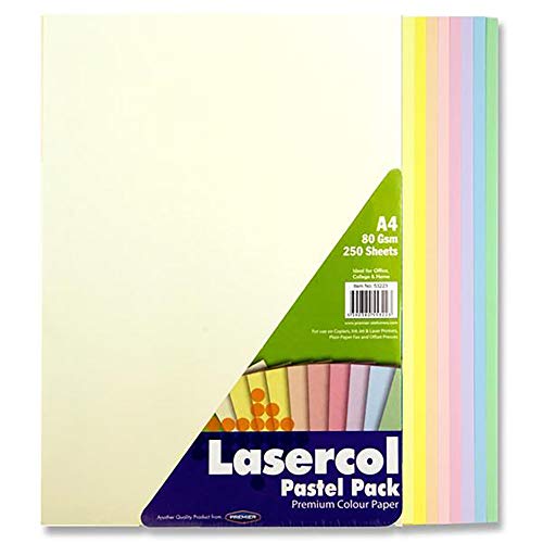 Premier Stationery Lasercol S4553223 - Carta A4, 80 g/mq, 250 fogli, multicolore