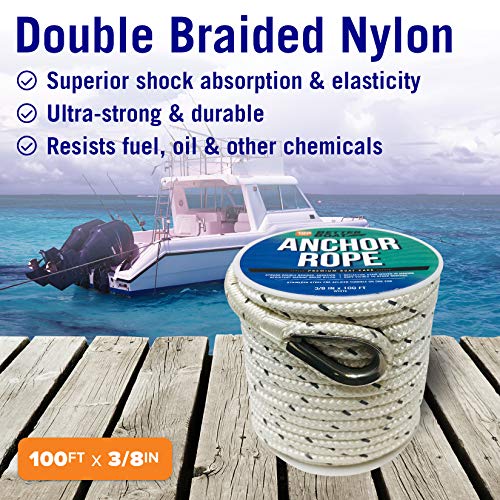 Premium Anchor Rope Double Braided Boat Anchor Line 100 ft White Marine Grade 3/8 Rope