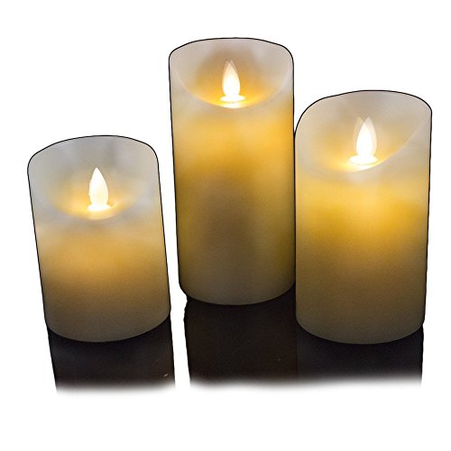 Premium - Set di 3 candele a LED in vera cera luce fiamma (con telecomando e timer)