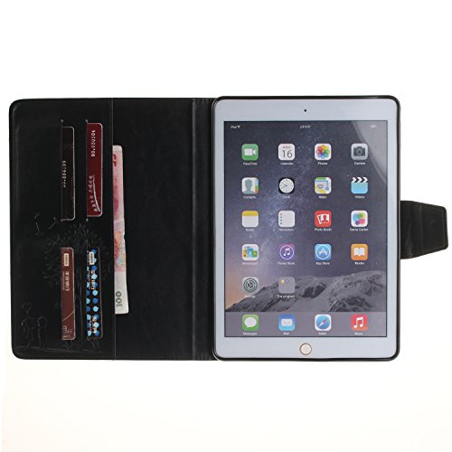 Premium Custodia per Apple iPad Air2 9.7", CLTPY Bellissimo 3D Modello Anti-Theft Anti-scratch Antiurto Pelle Carte e Protettiva Portafoglio Forma di Libro Flip Bookstyle Case Magnetica e Supporto di Stand Full Body Wrap per iPad 6 + 1x Stilo - Nero