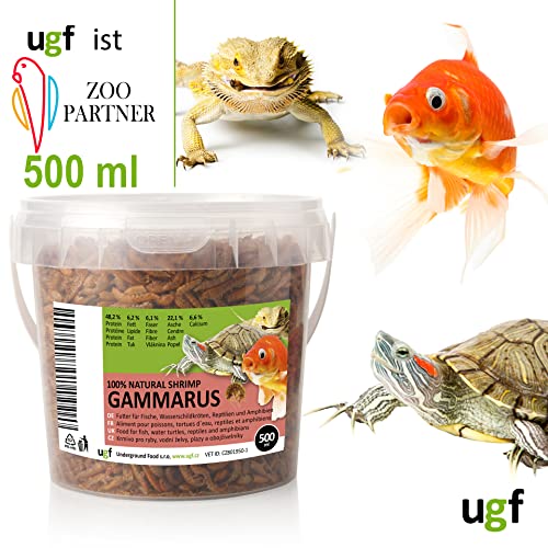 UGF - Premium Gammarus Freshwater Shrimp Dried, 500 Milliliter Bucket, Turtle Food, Aquarium Fish Food, Axolotl Food, Hamster Food, Hedgehog Food, Koi Food, Rat Food