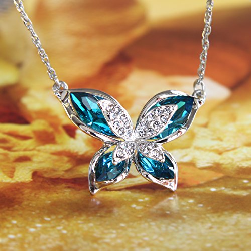 Le Premium Morpho farfalla Collana con pendente realizzati con cristalli Swarovski -Indicolite Blu