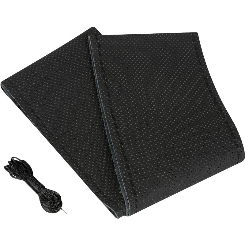 In pelle naturale traforata, si adatta perfettamente all?impugnatura anatomica del volante.Presa confortevole sia in estate che in inverno.Kit di montaggio fai da te completo di filo speciale in nylon ed ago.Indicato anche per volanti con airbag.