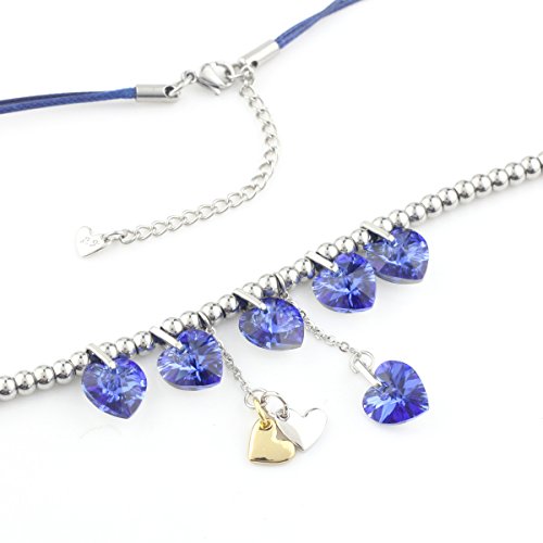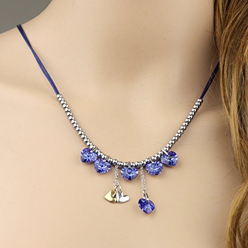 Le Premium pioggia di cuori collana pendente con Swarovski Elements vetro zaffiro blu