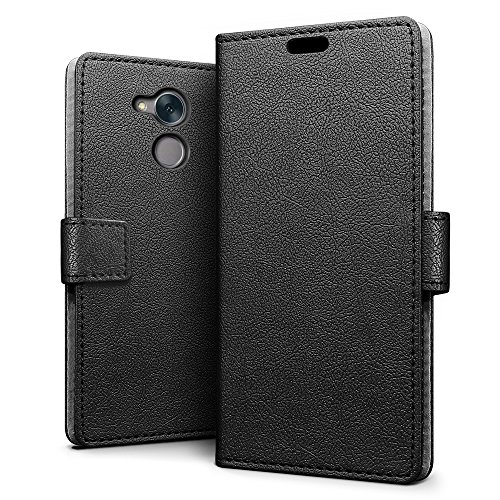 SLEO [Premium Portafoglio Protettiva Wallet Cover per Huawei Honor 6C, 2-Scheda Slot, [PU Pelle] Morbido Impermeabile Antipolvere Protezione - Nero