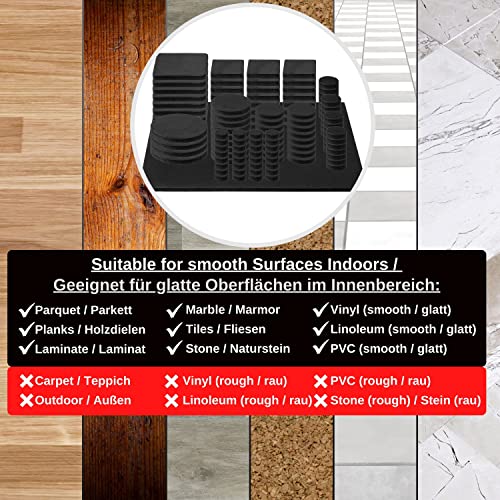 Kit Premium Protezione Mobili, Autoadesivi, 130pz, Nero, 8 Diverse Misure, Spessore 4mm, Cuscinetti in EVA per Sedie e Gambe del Tavolo, Cuscinetto Adesivo Antirumore Proteggi Pavimento, autoadesivi