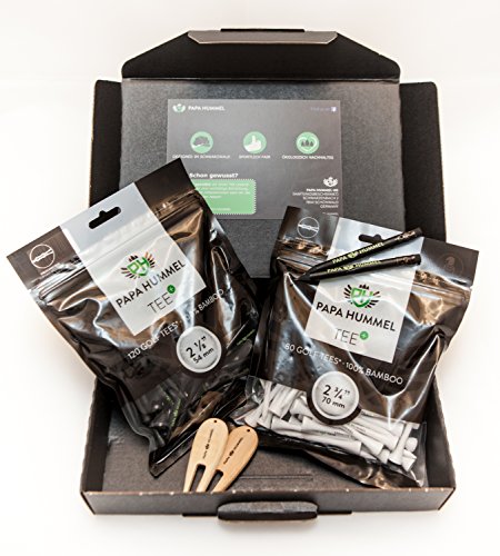 Contiene rispettivamente 1 pacco di noti 54 mm e 70 mm Premium Tee, 2 teschio-Tools di bambù e 2 elegante Score Card matite con gomma
