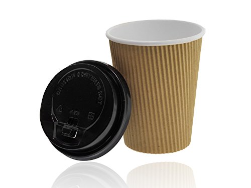 Premium Ripple Coppe 0,4 L, Marrone + stabile coperchio con beccuccio, Riffel Becher, Coffee Cups, USA e getta Becher, bicchieri di carta, cartoncino to go tazza, tazza, Duro Papier, Take away Stoviglie, Marrone, marrone, 400 ml