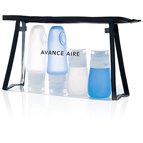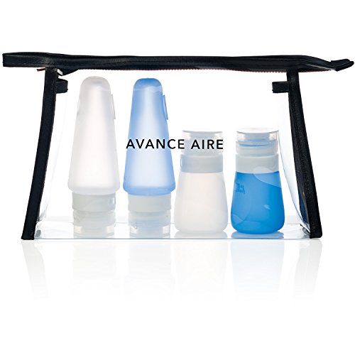 Premium gel silicone bottiglia viaggio set no Leak. Solido e facile da riempire. Adatto per bagaglio a mano con trasparente Wash bag, Blau-Clear (Blu) - VA-UK-AZ-A130827