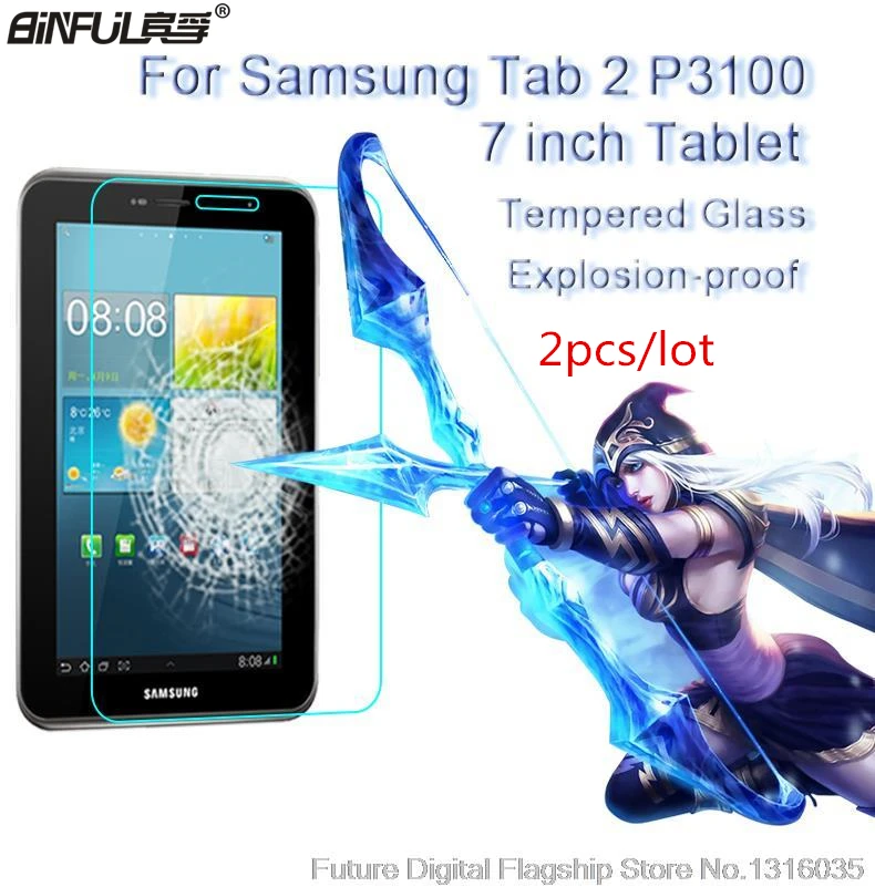 2pcs Premium Tempered Glass for Samsung Galaxy Tab 2 7.0 P3100 P3110 P3108 9H Hard Transparent Screen Protector Film
