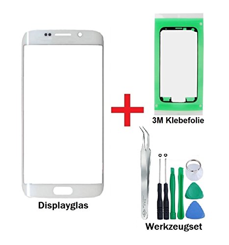ITG® PREMIUM Vetro display kit di sostituzione per Samsung Galaxy S6 EDGE in Bianco (White Pearl) - Vetro di schermo oleorepellente per SM-G925F + "3M" adesivo pretagliato e 8-pezzi set di strumenti