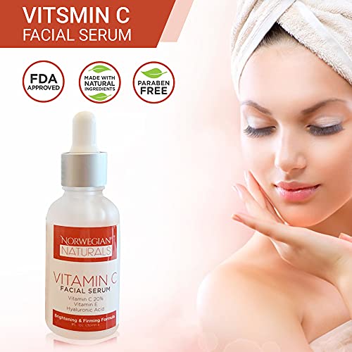 GUARDA GRANDE E DAI LA TUA FIDUCIA UN BOOST! - Norwegian Naturals Vitamin C Serum non è solo 100% naturale - vegano, senza parabeni, senza sillicati, polietilenglicoli (PEGS) o oli minerali e non testato sugli animali. È anche realizzato in una struttura certificata dalla FDA. Ogni bottiglia di siero è prodotta con la massima qualità possibile. Da non utilizzare in combinazione con altri prodotti.