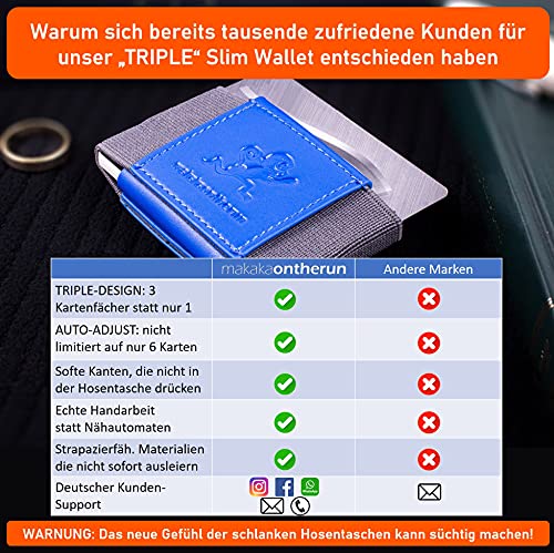 Custodia per biglietti estremamente resistente: cuciamo il nostro mini portafoglio in modo così stabile che durerà per anni. Abbiamo utilizzato il nostro Triple Mini porta carte da più di 2 anni