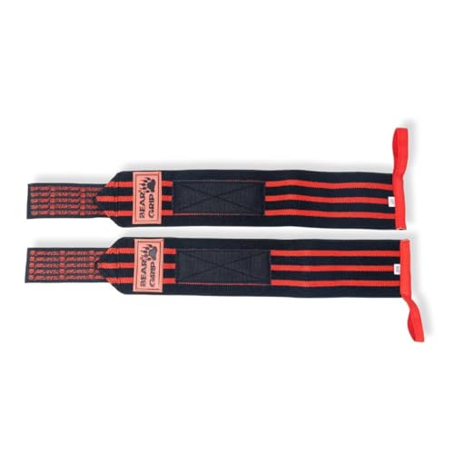 BEAR GRIP - Premium Weight Lifting Wrist Support Wraps (Black Red SE)