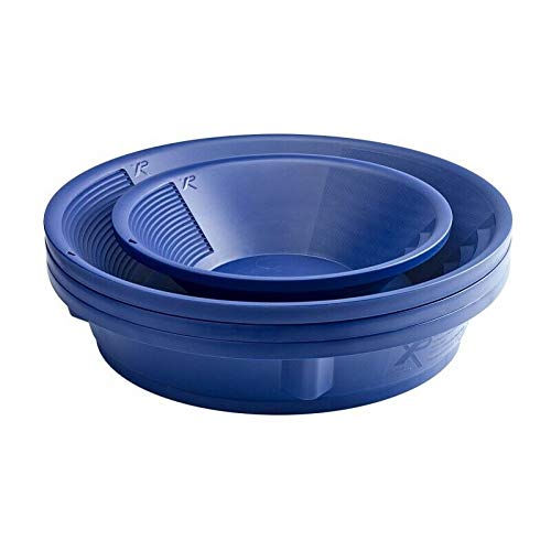 Gold Pan Premium Kit XPlorer per la ricerca dell'oro nei corsi d'acqua. Design unico innovativo. Batea con panning a 4 zone. Ultra compatto, totalmente impilabile. Facile da trasportare e riporre. Leggero e comodo da usare. Colore blu per un contrasto ottimale con l'oro