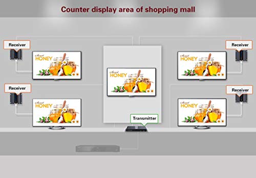 Questo prodotto dispone di 4 uscite HDMI. Queste 4 uscite sono sincronizzate. È possibile aumentare i tamponi intermedi e rafforzarli. Il prodotto offre soluzioni per la vendita al dettaglio HDTV e lo show site. Presentazione di sale riunioni, allenamento scolastico e aziendale.