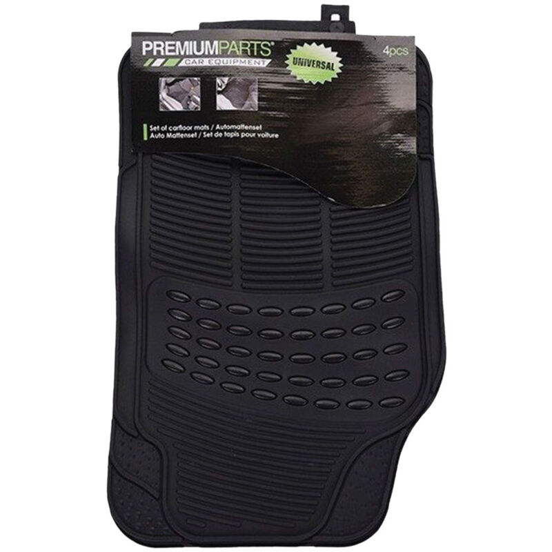 In gomma, proteggono i rivestimenti del pavimento dell'auto dallo sporco, fango, acqua e polvere. Il set è composto da 2 pezzi anteriori: 67 x 43 cm (LxP), 2 posteriori: 46 x 36 cm (LxP). Colore nero.