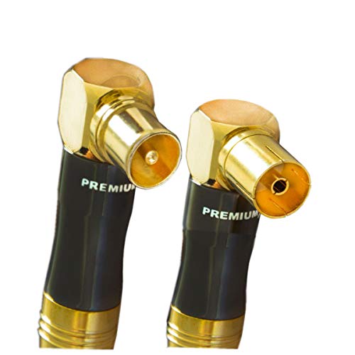 1m PremiumX Cavo antenna Gold-Line TV nero 135dB PURE COPPER 1x connettore femmina 90 ° TV + 1x connettore maschio 90 ° TV