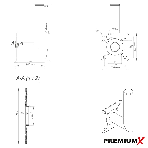 PremiumX Supporto da Parete in Alluminio da 15 cm per Antenne Paraboliche Satellitari - Certificato TÜV per la Sicurezza e l'Affidabilità