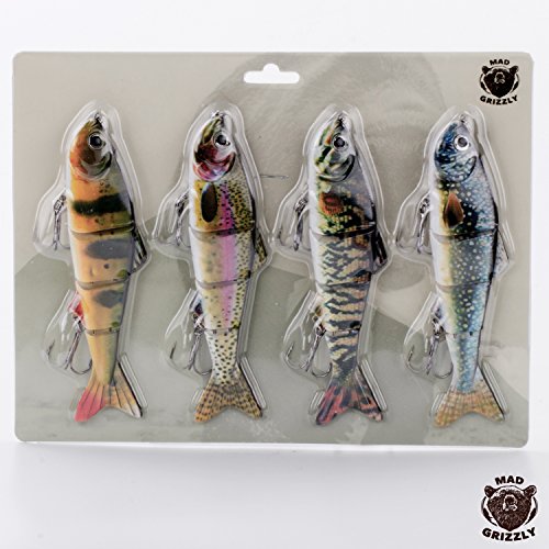 Premoum Set per Esche Artificiali per Pergamena 4 Pezzi 150 mm 37 grammi Perfetta per luccio, zander, perch, trota, baccalà 4 giunti con 2 ganci Movimento realistico in acqua Qualità Svizzera