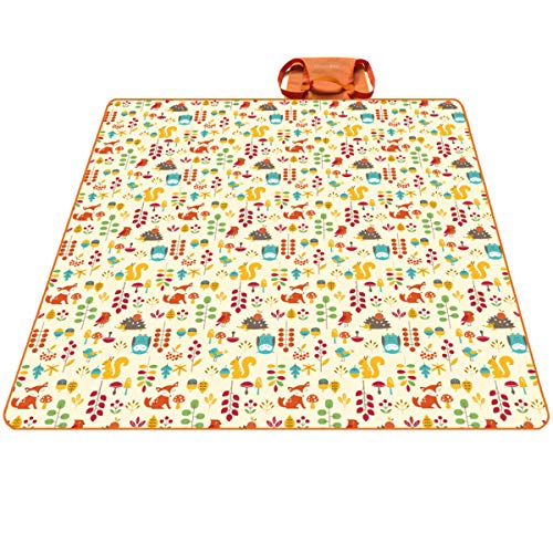 PREMYO Coperta da picnic impermeabile 200x200 cm extra large. Coperta pic nic grande in pile blu. Coperta picnic XXL pieghevole con maniglia isolante e imbottita ideale per spiaggia, parco o campeggio