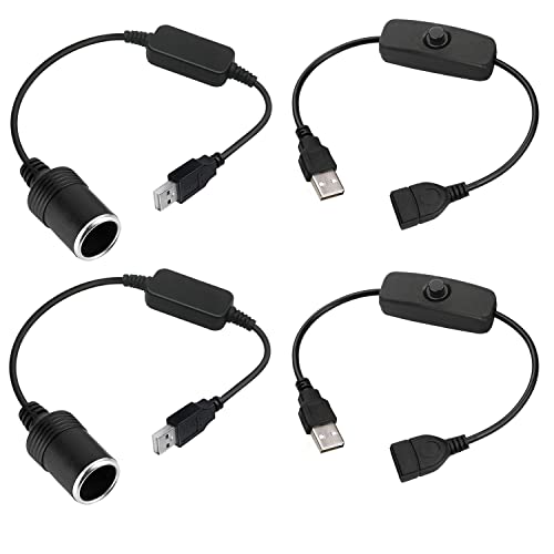 Presa Accendisigari Femmina da 5V a 12V, Porta USB a 12V Cavo Accendisigari Femmina per Presa Accendisigari per Auto, Cavo di Prolunga USB 12W con Interruttore, Lunghezza del Cavo 30cm