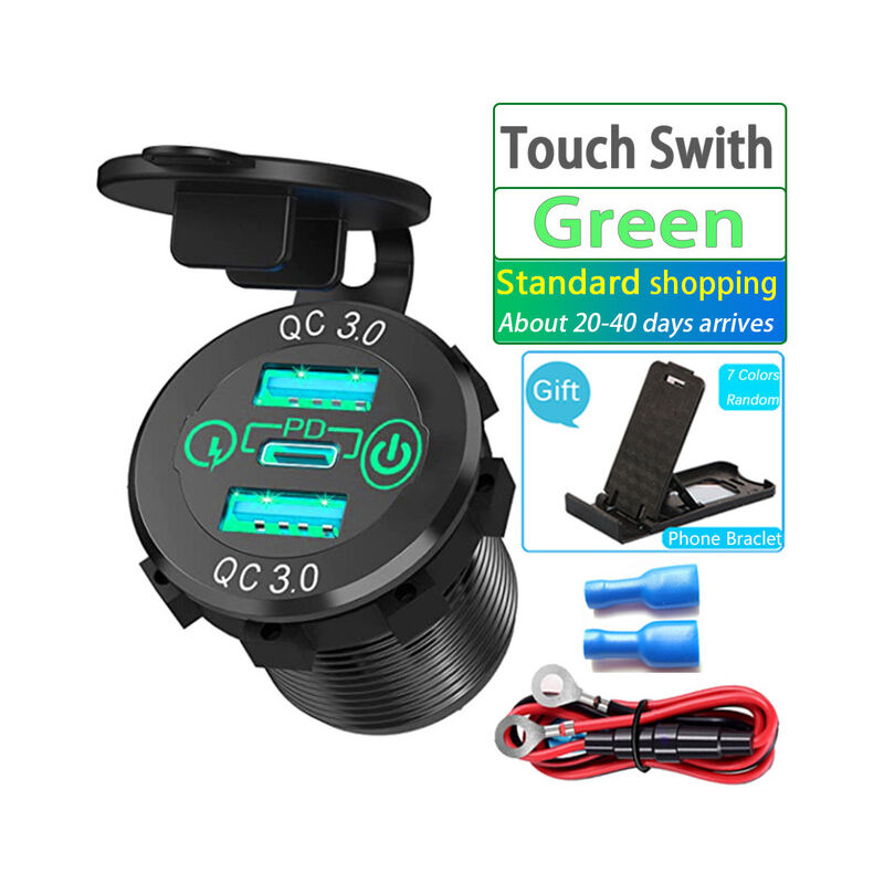 Calorosamente Ricordare Gli Acquirenti: Nome: Presa di Ricarica USBMateriale: ABSColore: Rosso/Verde/BluIngresso: 9V-32VPotenza: 60W(PD30W + CONTROLLO di QUALITÀ 3.018W * 2)Uscita: 12V / 1.5A;