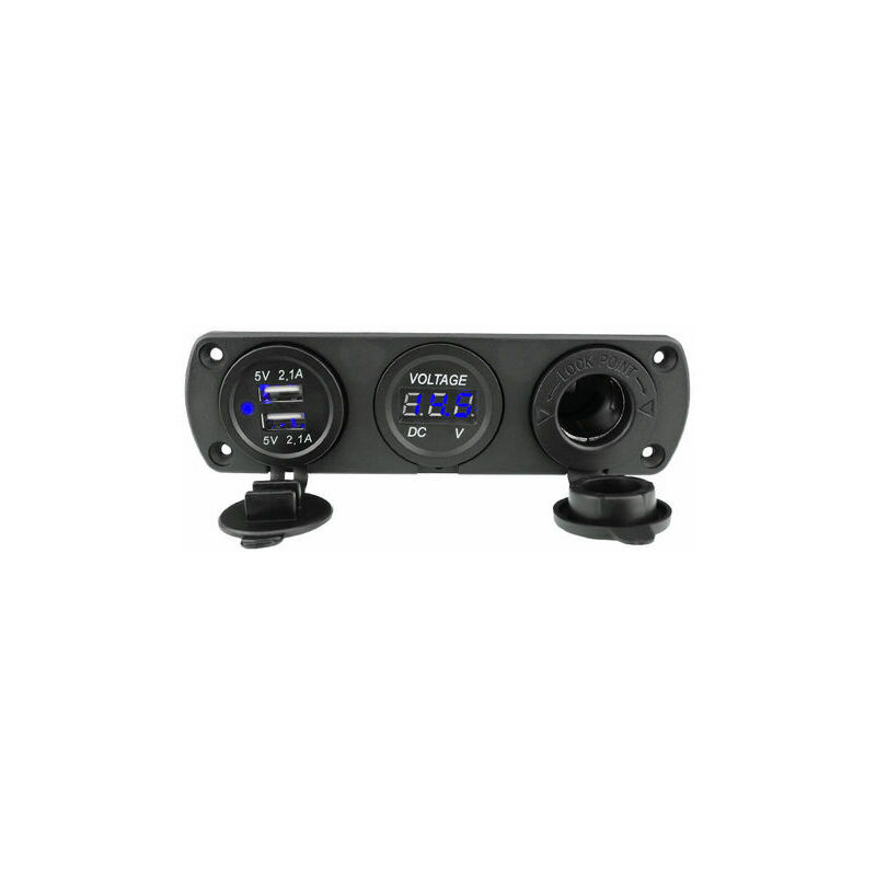 Descrivere Dimensioni: 15*4.3*5.3cm Pannello presa accendisigari 3 in 1 - Questo pannello presa 12V è progettato con una presa 12V USB RV + un voltmetro con display digitale a LED + una presa accendisigari 12 V. Pannello multifunzione a tre fori per lavori fai da te, rimovibile per sostituire 'altre prese di ricarica o 'altri dispositivi che desideri. Facile da installare e utilizzare. Adattatore per accendisigari con retromarcia - Un'estensione della presa accendisigari sufficiente per l'uso simultaneo di vari dispositivi portatili nel veicolo. < Doppia presa di ricarica USB impermeabile - Questa presa per auto USB da 12 V ha due porte di ricarica USB integrate, due uscite porta: 5 V/1 A e 2,1 A (3,1 A in totale), rileva automaticamente il tuo dispositivo e ne carica 2 contemporaneamente alla migliore velocità di ricarica del dispositivo. ! Voltmetro LED in tempo reale: l'ampio schermo del voltmetro digitale visualizza la tensione da 5-48 V, se la tensione è in uno stato normale, è