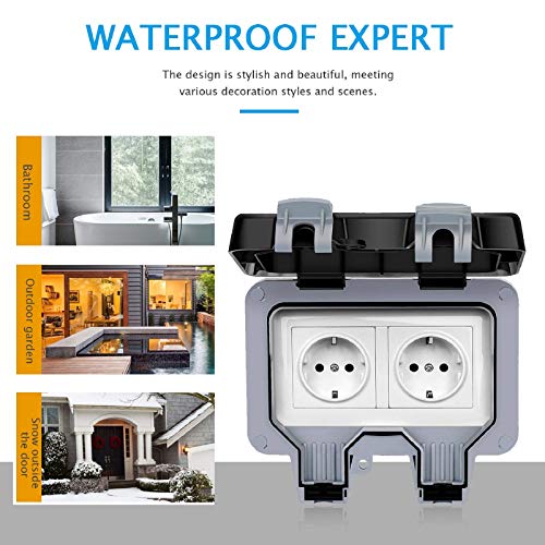 Presa Commutata Resistente Agli Agenti Atmosferici 16A 50Mh Doppia Presa a Muro Commutata Ip66 Uso Esterno Prese Elettriche con Bordo Quadrato Presa Commutata (Specifiche Europee)