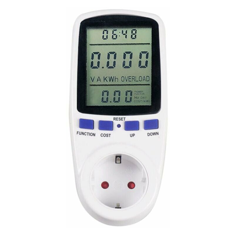 Contatore di energia digitale - Collega semplicemente il dispositivo alla fonte di alimentazione tramite la presa del contatore di energia e puoi monitorare la tua perdita di elettricità in tempo reale. Risparmia energia e denaro e proteggi l'ambiente. Aggiunta retroilluminazione, facile lettura e registrazione dei dati al buio. 【7 modalità per misurazioni accurate】 La presa del misuratore di potenza è dotata di un display LCD per una facile lettura dei dati. Il misuratore di consumo con 7 modalità viene utilizzato per monitorare potenza, tensione, frequenza, corrente, fattore di potenza, costo e potenza minima e massima, potenza accumulata. 【Efficiente e facile da usare】 Il contatore di energia della presa del wattmetro è perfetto per elettrodomestici, come computer, lavatrice, TV, console di gioco, router, frigorifero, elettrodomestici da cucina, illuminazione per acquari e altri elettrodomestici per massimizzare il risparmio energetico e il denaro. 【Facile da usare】
