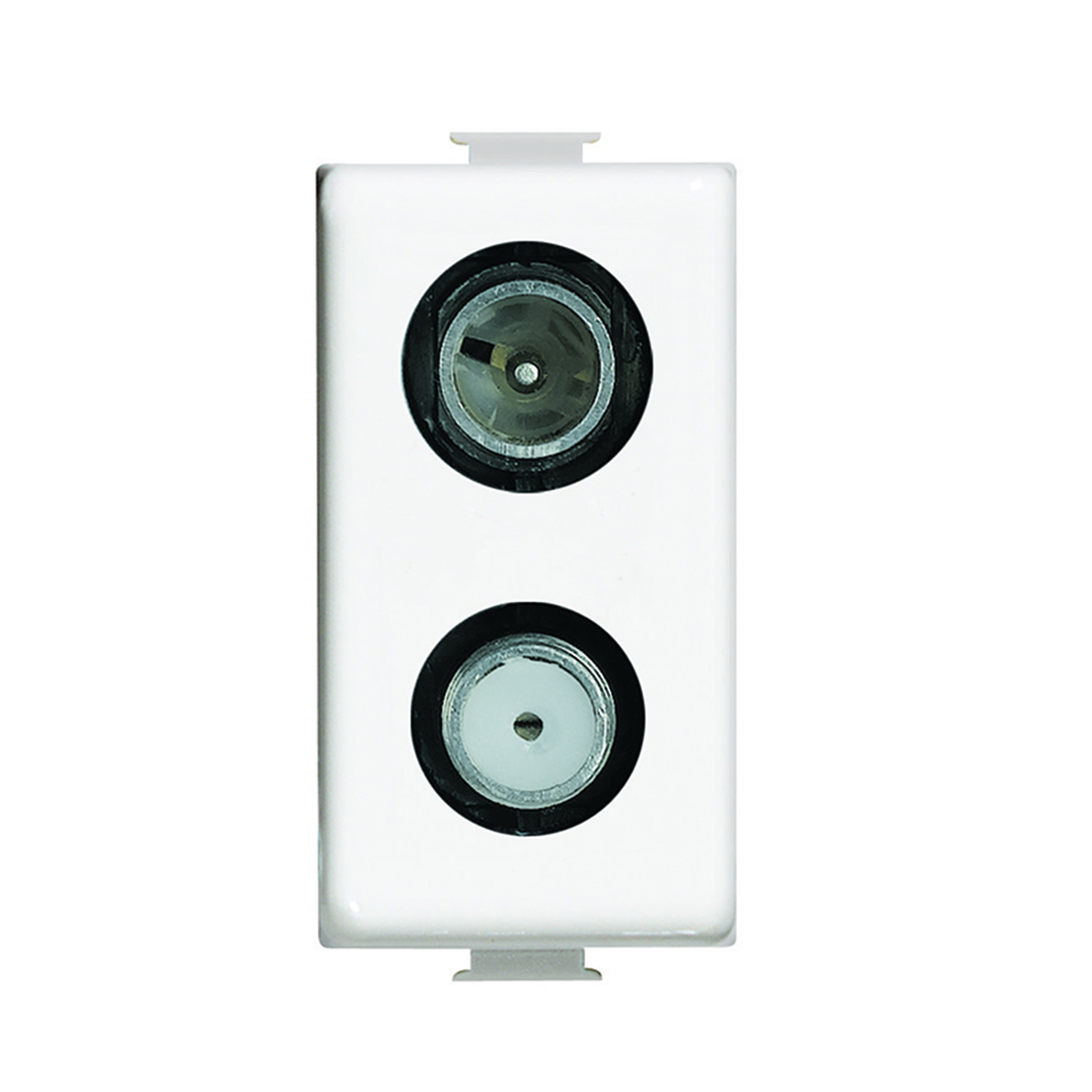 1 modulo, con connettore maschio. Adatto per impianti di antenna monoutenza telealimentati e centralizzati. Adatto per impianti via satellite monoutente e centralizzati con passaggio di corrente e di segnale per la selezione dei canali