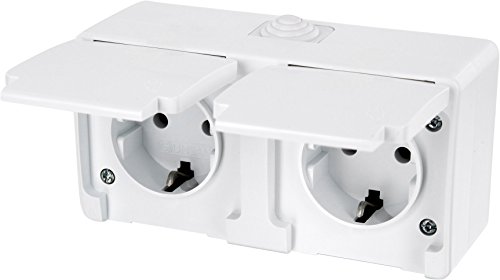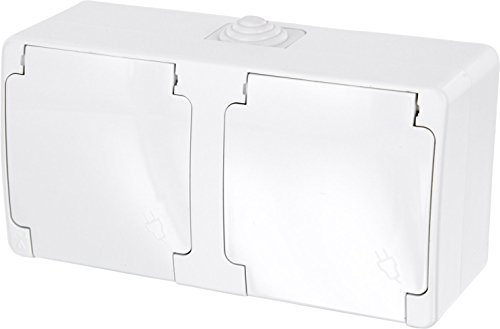 Presa doppia non da incasso per ambienti umidi con coperchio a molla IP54 - Tutto in uno - Cornice + inserto + copertura (serie G1, colore: bianco puro)