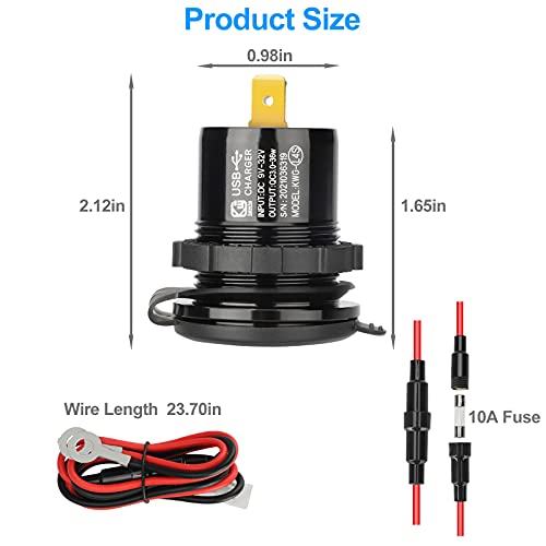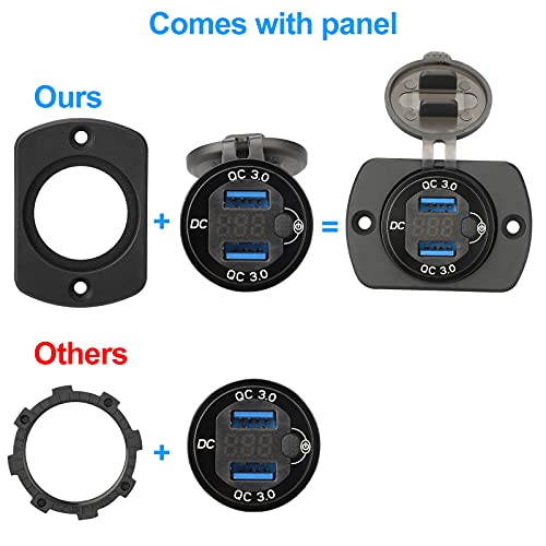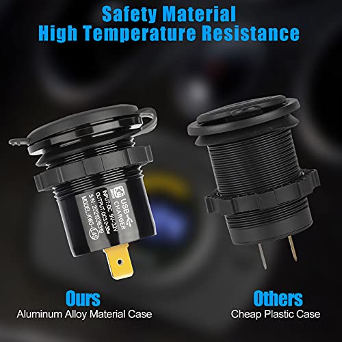 2PCS QC 3.0 Presa USB per Auto Doppio USB in Alluminio, 12V/24V Dual USB Presa di corrente Adattatore impermeabile con interruttore On/Off e voltmetro LED per veicoli Auto Barca Moto SUV Camion