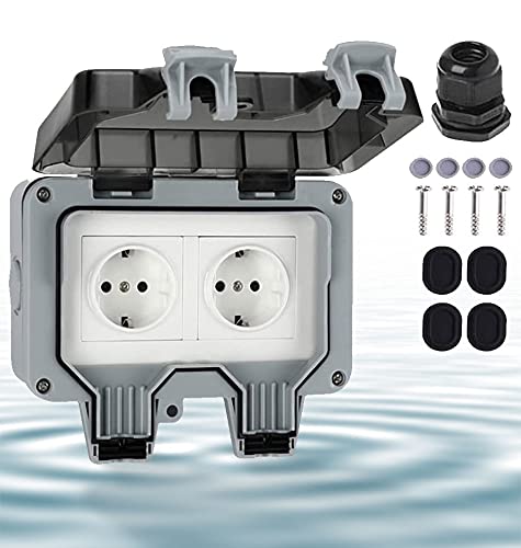 Presa Elettrica da Esterno IP66 2 Vie, Presa da Esterni con Interruttore a Resistente Alle Intemperie ad Alte Prestazioni Per Uso Esterno con Coperchio a Cerniera