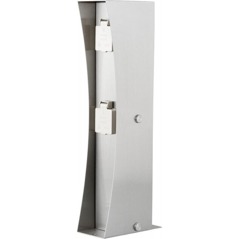 Descrizione Palo con due prese per uso esterno. Questo distributore di corrente resistente alle intemperie è realizzato in acciaio inossidabile, grazie alla classe di protezione IP44 è protetto dagli spruzzi d'acqua e quindi ideale per l'uso esterno. Ideale per il prato im letto o altro terreno adatto per il collegamento sicuro di attrezzi da giardino tipici, come tosaerba, irrigatori o luci da giardino. Dettagli • Tipo di prodotto: Socket post • Materiale: Acciaio inossidabile, verniciato trasparente• Colore: argento• 2 prese con coperchio incernierato • Grado di protezione: IP44 • inclusa dima di foratura• totale massimo 3500 watt • alimentazione: 220-240V, AC 50-60Hz dimensioni e peso• Lunghezza x larghezza x altezza in cm: 16 x 9, 5 x 46 • peso: 2,35 kg
