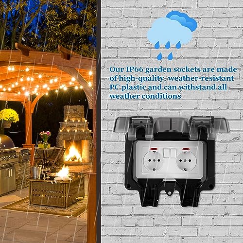 Presa da Esterno Impermeabile IP66, Doppia Presa Elettrica Esterna con Interruttore, Scatola Elettrica da Esterno, Scatola Esterna Presa Elettriche da Muro, per Garage, Piscina e Giardino