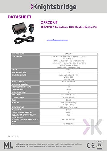 230V Outdoor resistente alle intemperie doppia presa kit con 3m di cavo esterno, ghiandola di tenuta e spina RCD rewireable