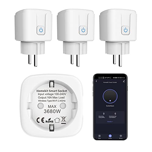 Presa intelligente WiFi: presa intelligente compatibile con Apple HomeKit, Siri, Alexa, Google Assistant, telecomando vocale e app, spina WiFi con timer/programmazione (confezione da 4)