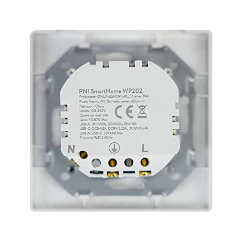 Presa Intelligente WiFi, Spina Smart Plug PNI SmartHome WP202 WiFi con USB e USB tipo C, compatta Alexa e controllo vocale Google Home e app Smart Life, Presa con USB C, Presa Smart