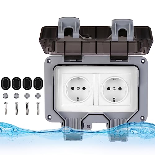Presa per interruttore da esterno impermeabile - 2 gang Prese Elettriche da Muro con Coperchio Incernierato, Presa Elettrica Esterno Presa Esterna Da Muro, per Bagno, Garage, Piscina e Giardino