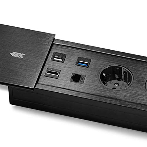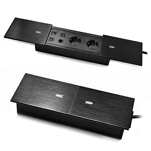 Presa multipla da tavolo, in metallo, 2 prese Schuko, 1 USB 2.0, 1 USB 3.0, 1 HDMI, 1 CAT6, 1,5 m di cavo con spina, per scrivania, mobile